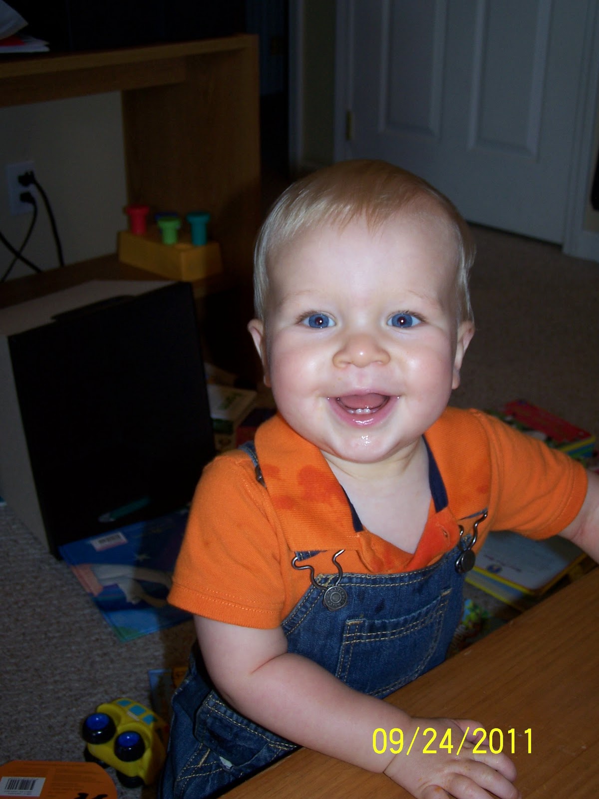 Now, it's 8pm and I just put Marcus to bed. I was crying before I even started rocking him, thinking about how quickly time passes, how fast he's growing up, and how THANKFUL I am to God for blessing Mark and I with a child. The Bible says children are a reward from God and I don't feel worthy of such a gift, but if He chose me to be Marcus' mommy, and Mark to be his daddy, we will gladly take and raise him to further the kingdom of God. As I type this, Marcus is chatting up a storm in his room. Singing, talking, and overall making any kind of noise he can, including kicking the side of his bed. He's big for 1. Big in the sense that he has a big personality, big/strong will, and a big heart, not to mention he's bigger than most 18 month olds we come across, but that's another story.